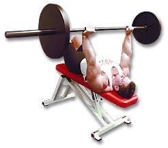 De primära muskler som används i nedåtlutande bänkpress är nedre bröst. Sekundära är mittre, triceps och axlarna.