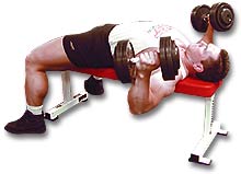 Vid toppen av övningen, rotera du lillfingrarna mot varandra och nuddar änden av hanteln mot den andra. Det kommer att hjälpa till att helt kontrahera brösten.