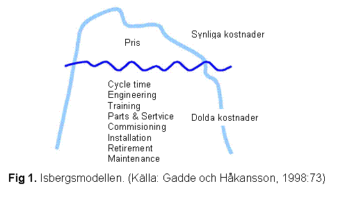 I relationen med en leverantör kan olika delar prioriteras. Det som är mest uppenbart är oftast priset på varan eftersom det är vad som kommer att betalas till leverantören. Till detta pris kommer dock en mängd andra kostnader. En modell för att beskriva detta är isbergsmodellen (se Fig. 1) (Gadde och Håkansson, 1998).