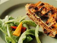 köttfärssås, pastaplattor och ostsås. Ostsås på toppen och strö över resten av