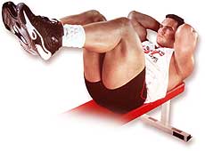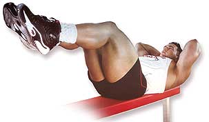 Ligg rak på golvet eller på en bänk. Böj benen och lyft upp knäna så att benen är lodräta med golvet. Med händerna placerade bakom huvudet eller nedanför hakan, andas ut och curla dig uppåt mot knäna med magen spänd. Håll kontraktionen i någon sekund, sänk sedan sakta ner överkroppen till startläge.