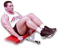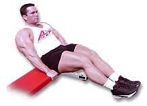 Sitt tvärsöver på en rak bänk och ta tag med händerna för stöd. Börja med att övre kroppen lutar lite bakåt och benen utsträckta.