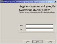 Skriv in Host och Port, som Ni får från apoteket och välj Nästa.