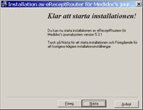 Starta eReceptRoutern genom att klicka på filen eRcptRtr.exe som ligger i Medidoc-katalogen, se följande dialog.