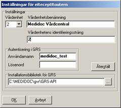 Visar platsen för eReceptinstallationen. Får inte ändras! |