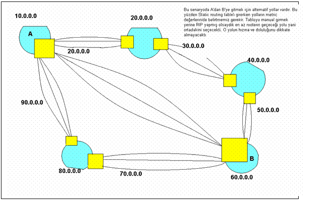 Routing protokolü kullanmak istenmiyorsa static olarak Routing table yazılabilir. Küçük networklerde olabilir ama büyük networklerde zordur. Kullanılmaz. Tek bir faydası ardır. Routing protokolleri sistemin performansını düsürür. Statik girmek protokol kullanımını önler bu yüzden network'ün performansı artar.