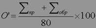 Після запо 111f58b 74;нення тестового бланка нами здійснювався підрахунок балів, набраних досліджуваним. У опитувальнику міститься 10 «прямих» (1, 3, 4, 7, 8, 9, 10, 13, 15 і 19) та 10 «зворотних» питань (2, 5, 6, 11, 12, 14, 16, 17, 18 і 20). Кожна відпо 111f58b 74;ідь оцінюється від 1 до 4 балів. «Зворотні» відпо 111f58b 74;іді підраховуються окремо. Потім бали, набрані досліджуваним по «прямих» (Σпр) і «зворотних» (Σзв) відпо 111f58b 74;ідях, підсумовуються, і отримана нами таким чином «сира» оцінка переводиться в шкальну О' за формулою: