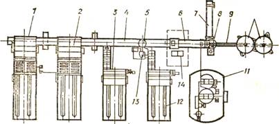 транспортер; 8 — подрібнювач-змішувач; 9 — шнак; 10 – бункер-