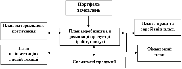 Реалізувавши себе як частина управлінської діяльності, пла 141c26b 85;ування повинно дати чіткі орієнтири для працівників і підрозділів, тобто процес пла 141c26b 85;ової діяльності мусить завершитися складанням документа, де б визначалися завдання, терміни, контрольні цифри, графіки виконання робіт і т.п. Таким документом є пла 141c26b 85;. Оскільки один показник не може охопити всі завдання, що постають перед підприємством в різних напрямках його діяльності, потрібна система взаємозалежних показників.