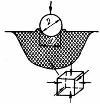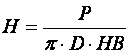 В поверхневому шарі під індентором іде інтенсивна пластична деформація (рис. 6.1), а діаметр відбитка виходить тим менше, чим вище опір матеріалу зразка деформації. Число твердо 818j92i 89;ті за Брінеллем (НВ) є відношення навантаження Р, що діє на індентор діаметром D, до площі S відбитка: