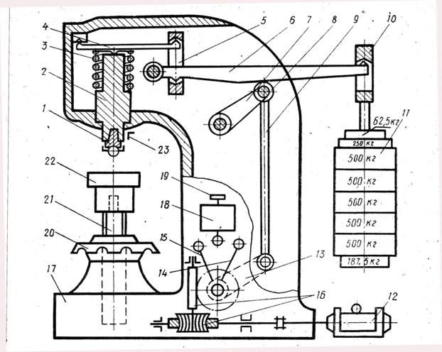 витримки зразка або деталі під навантаженням регулюється за допомогою кінцевих перемикачів, встановлених на осі редуктора. Коли шатун доходить до кінцевого перемикача, він спрацьовує і електродвигун починає обертатися у зворотній бік, знімаючи навантаження зі зразка. По закінченню випробування опускають столик, знімають зразок, вимірюють діаметр відбитка і визначають число твердо