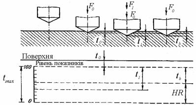 одержують величини твердо 818j92i 89;ті за Роквеллом HR, для яких більшим глибинам втискування відповідають менші числа твердо 818j92i 89;ті HR.