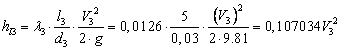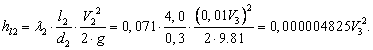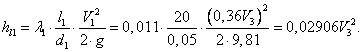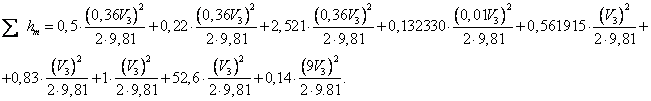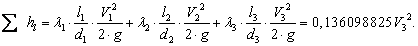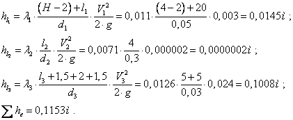 Оскільки загальна схема трубопроводів складається з трьох ділянок труб різного діаметру, то сума втрат напору по довжині буде, визначатися за формулою: