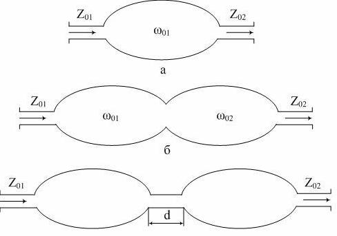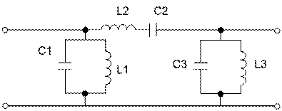 На рис. 7 зображено двокамерний смуговий фільтр з безпосередніми зв'язками, утворений трьома індуктивними діафрагмами,