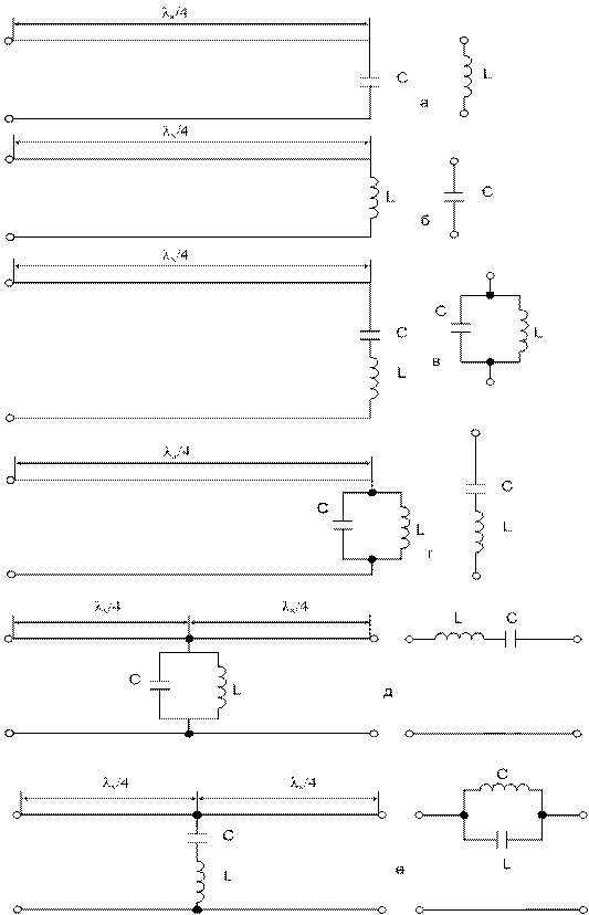 При конструюванні хвилеводних фільтрів широко використовуються трансформуючі властивості чвертьхвильових відрізків хвилеводу. В теорії фільтрів чвертьхвильовий відрізок хвилеводу називають інвертором опорів. На рис. 4 наведено найпоширеніші типи можливих інвертувань опорів.