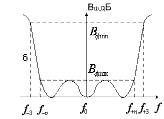 lg f n < f < f n B <B max f > f f < f ) було б не меншим за задану величину ( Вф >Вфmin фільтра в смузі пропускання.