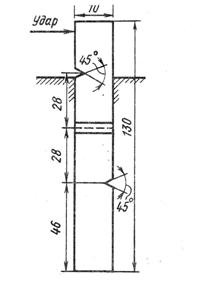 Статичні випробування металів не завжди відтворюють реальні умови навантаження деталей, тому що в умовах експлуатації сучасні конструкції зазнають значні динамічні навантаження. Величина діючого зусилля при цьому залежить від маси тіла, що вдаряє, і від швидкості його дії. При впливі динамічних навантажень ще сильні 636e45g 1096;е проявляється несприятливий вплив на механічні характеристики неоднорідності розподілу внутрішніх напружень.