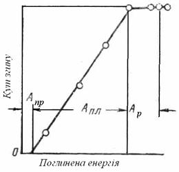 Постійний рівень значень ударної в'язкості при r < rкр, відповідає значенню ар, пропорційній роботі розвитку тріщини, а величина а3 = ан – ар.