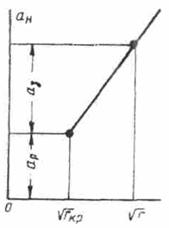 Поділ ударної в'язкості на дві складові (а3 і ар) можна здійснити і в результаті побудови залежності ан від радіуса кривизни надрізу r. Дія дуже гострого надрізу аналогічна дії зародкової тріщини. Тому при значеннях радіуса закруглення надрізу, менших якогось критичного, величина ударної в'язкості буде постійна. Ця залежність буде мати вигляд, схематично показаний на рис. 5.10.