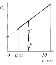 ¢язку з тим, що зміна ударної в'язкості залежно від гостроти надрізу підкоряється приблизно лінійному закону, було запропоновано екстраполювати цю залежність до r = 0 і отримане значення (aн вважати рівним приблизно роботі, що витрачена на розвиток тріщини віднесеної до площі перерізу зразка).