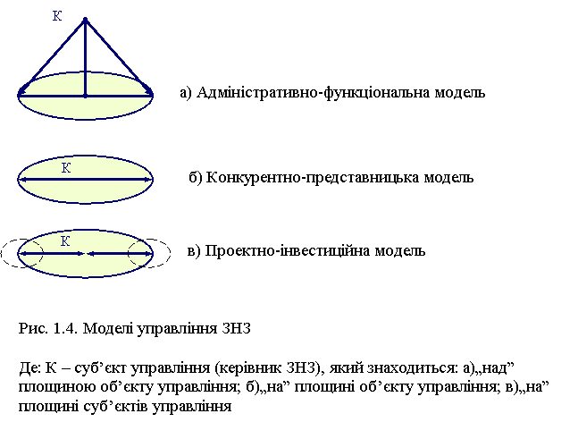 У період переходу України до ринкових відносин для ЗНЗ актуальним стає питання застосування теорії педагогічного менеджменту, що дає можливість запровадити додаткові об’єктивні критерії оцінювання результативності праці кожного працівника, а керівника – наблизити до його проблем. У такій освітній організації утверджується демократичний стиль управління; пріоритетними стають колегіальні форми управління; організаційною структурою лінійно-функціональна; підвищується конкурентоспроможність закладу освіти, він набуває позитивного іміджу , під яким в теорії розуміється “образ натуралізованої реальності, який описує природу явища, його сутність без прикрас і культурної обробки”[]. Таку організаційну модель управління називають конкурентно-представницькою, в ній керівник (К) розміщується у площині об’єкту управління і відіграє важливу роль у формуванні іміджу ЗНЗ спільно з іншими членами колективу. У колективі діє єдина команда. Така модель обґрунтовується науковими засадами теорії менеджменту