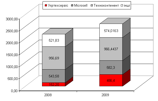 За даними експертних досліджень на 2007 рік прогнозоване зростання ринку послуг зв’язку CDMA складає 80%. Якщо структура ринку не змінюватиметься, що підприємство отримає в 2007 році 51 тис.грн. прибутку від підключення додаткових 280 чол.(табл.3.1.). Проте як згадувалося в попередньому питанні, підприємство планує збільшити обсяг підключень в 2007 році до 880 людей в рік. Даної цілі планується досягнути завдяки рекламним оголошенням, акціям та інших промоційним заходам.