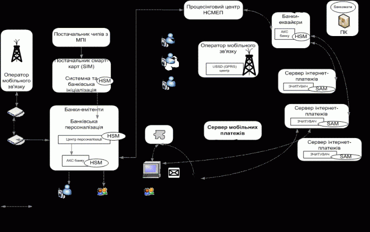 (входить в компанію Інком) спільно з НБУ, реалізує інфраструктуру обслуговування мобільних, безготівкових, оперативних (технологія WAP) і безпечних електронних платежів на базі технології НСМЕП. Використовується SIM-карта з додатком