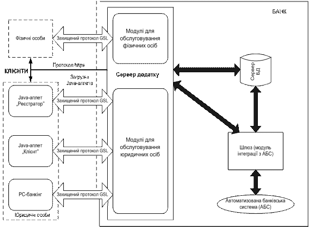” клієнти банку для виконання операці& 111g61b #1081; у системі. Тут реалізований протокол захищеної взаємодії, шифрування даних, механізм ЕЦП.