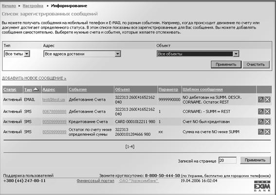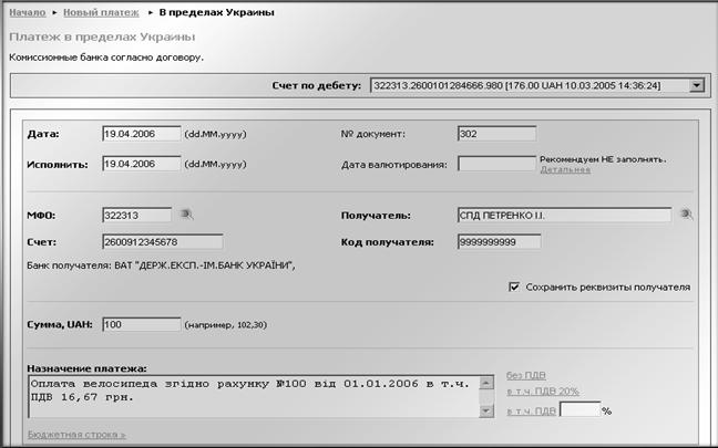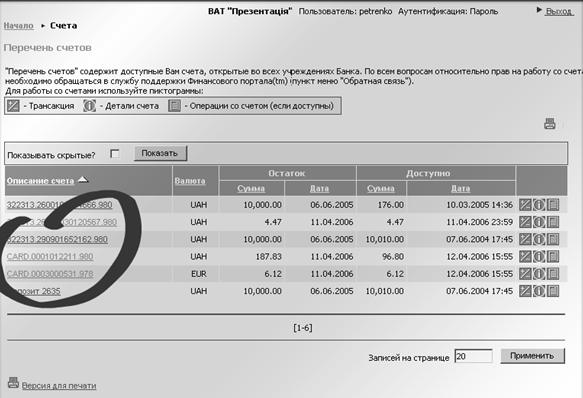 Послуга клієнтам у системі Інтернет-банкінгу надається у вигляді web-сторінки.