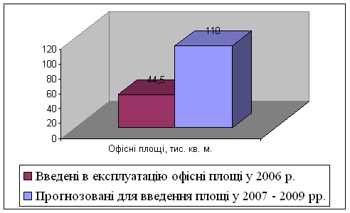 київському ринку з початку 2007 р. апазоні $ 70 – 200 за кв. м. Орендні центрах складала $ 220, мінімальна близько $ 40 – 50. Усього загальна пло складала близько 500 тис. кв. м, що на 55 тис. кв. м більше, ніж у 2006 році. У столиці в 2007 році було введено в експлуатацію близько 166 тис. кв. м ні приміщення заповнювалися в 2007 році на 95 – 100%.