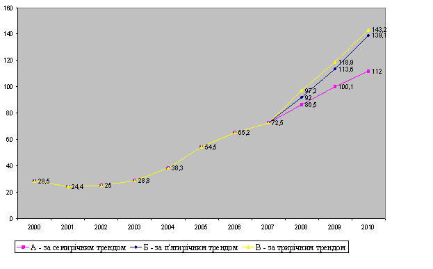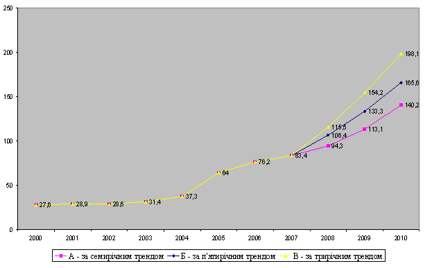 мирічним трендом — у 1,7 раза, за п'ятирічним — у 2 рази, за трирічним — у 2,4 раза. Маються на увазі екст Аналогічно ціни на кокс за останні 7 років подвоїлись, і до 2010 року можуть зрости у 1,5 раза. Це основні метал (рис. 10 і 11).