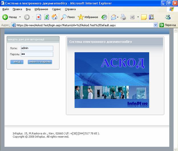 По темі: «Автоматизована система к& 222j93c #1086;нтролю і організації діловодства «АСКОД» КОМПАНІЇ «ІНФО ПЛЮС». Інсталяція та застосування клієнтської частини. Організація та контроль діловодства в системі «АСКОД». Робота клієнтської частини інтегрованої системи електронного документообігу в органах влади.»