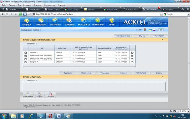 Вивчити елементи інтерфейсу автоматизованої системи контролю і організації діловодства «АСКОД» (АСКОД – Інструкція користувача.doc).
