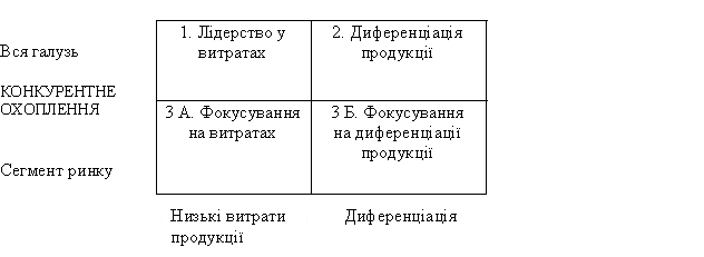 М. Портер називає базовими стратегіями, маючи на увазі їх універсальність по відношенню до застосування у різних видах бізнесу (рис. 1).