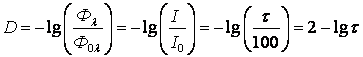 Використовуючи закон Бугера-Ламберта можна визначити концентрацію розчину за методом порівняння коефіцієнта пропускання розчину невідомої концентрації Сx і коефіцієнта пропускання розчину відомої концентрації С.