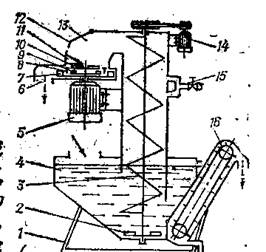 (рис.3.4) призначений для відокремлення каміння від коренебульбоплодів, їх миття і подрібнення на частки розміром до 10 мм (для свиней) або 15 мм (для великої рогатої худо 626b13g 73;и). Він складається з ванни 4, гвинтової мийки 3 з диском-активатором 2, транспортера 16 для видалення каміння, горизонтально-дискової коренерізки рами Робочі машини приводяться в дію окремих електроприводів. Електропривод коренерізки має дві швидкості обертання, що дозволяє регулювати ступінь подрібнення коренеплодів.