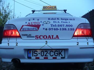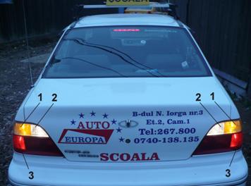 Foto.2. Mijloace semnalizare spate (1): - lanterne semnalizare - avarie; 2 - lanterne mers înapoi; - lanterna stop - frâna. |