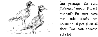 Ah, as mai putea sa îti povestesc multe despre sistemul deosebit al plamânilor mei, de miracolul zborului, constructia minunata a penelor, de instrumentele mele de navigatie... Dar mai bine o las pe colega mea, rândunica, care o poate face mult mai bine.