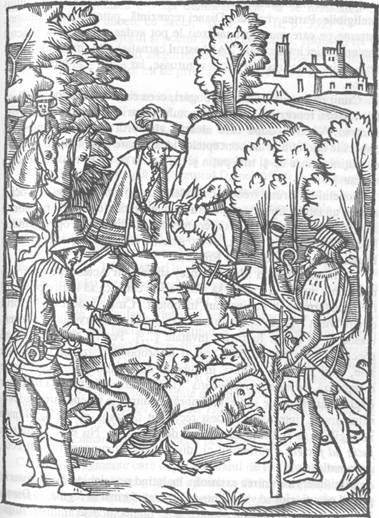 Flgura 5 : Vīnarea cerbului. Du Fouilloux, La Venerie, fig. 73, p. 111.