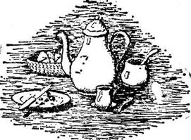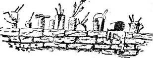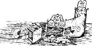 tuind o masuta si cīteva scaune. Īn sfīrsit femeile adusera un pat de fier īnvechit si īmpodobit cu īnflorituri, o saltea doar putin rupta si doua paturi. Vagauna de piatra de sub scena ruinei se preschimbase īntr-o odaita placuta. La urma zidarul, avīnd talent artistic, mai zugravi pe perete un frumos tablou cu flori. Pīna si cadrul īmpreuna cu cuiul de care atīrna tabloul fura pictate la locul lor.