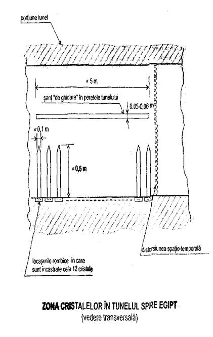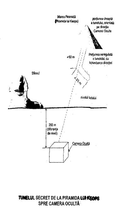 Am urmarit sa ma adun si sa dau o anumita coerenta primei mele experiente de deplasare în timp. Fara îndoiala ca instalatia a preluat si a modulat temporal impresia cea mai puternica din subconstientul meu, proiectându-ma cu un an în urma în locatia respectiva. Totul era atât de viu si de clar, chiar mai bogat în trairi si perceptii decât în varianta fizica! Am închis din nou ochii încercând de aceasta data sa ma proiectez într-un moment temporal ales de mine prin vointa proprie. Cautam febril în minte un astfel de reper, urmarind sa-mi dau seama ce anume m-ar putea interesa mai mult. Am sesizat ca atunci spatiul negru din fata ochilor "tremura" sau, mai bine zis, facea valuri, iar în anumite regiuni ale sale apareau crâmpeie ininteligibile de imagini, care mai apoi dispareau într-o fractiune de secunda. Simteam cum fierbinteala din frunte creste din nou tot mai mult astfel ca, în disperare de cauza, am ales din milioane de posibilitati sa ma proiectez în timpul constructiei tunelului secret de la Marea Piramida catre Camera Oculta. Proiectia temporala a fost instantanee, foarte dura, ca un fel de "izbitura". Am vazut niste lumini orbitoare într-un spatiu de sectiune triunghiulara, la fel cu cea a tunelului vazut de noi în imaginile holografice ale computerului lui Aiden. Acolo exista un