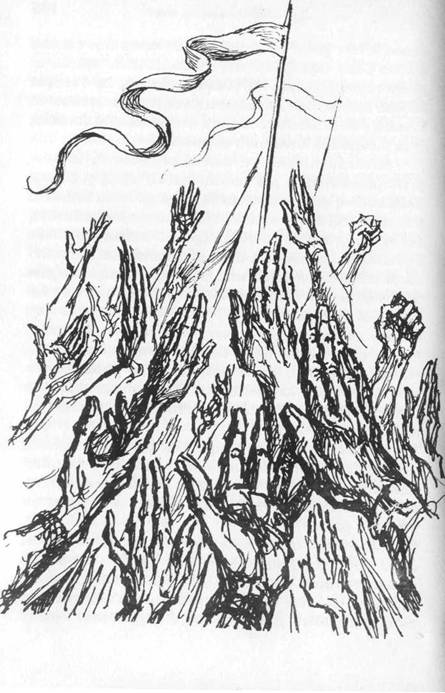 Multumita Tatalui Nostru din Adīncuri, amenintarea a fost īnlaturata. Contraatacul nostru s-a dat la doua niveluri: la nivelul cel mai de jos liderii nostri au izbutit sa reīnvie un element ce fusese implicat īn miscare īnca din primele ei zile. īn inima acestei lupte pentru Libertate era ascunsa adīnc si o ura īmpotriva libertatii personale. Primul care a dezvaluit acest lucru a fost Rousseau, acel om nepretuit. īn democratia lui perfecta, daca va amintiti, nu e permisa decīt religia de stat, este restaurata sclavia si individului i se spune ca el a vrut cu adevarat sa faca (desi nu stia) ceea ce īi cere guvernul. Din acel punct de plecare, via Hegel (un alt indispensabil propagandist al nostru), am reusit cu usurinta sa fondam statul nazist si cel comunist. Chiar si īn Anglia am avut un oarecare succes. Am auzit nu demult ca īn tara asta omul nu putea, fara permisiune, sa taie cu propriul sau topor un copac ce era al lui, sa-1 faca scīnduri cu ferastraul si sa construiasca un adapost īn gradina lui.