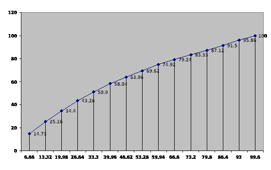 | Ex: 1294440 : 8782080 = 0,1473 ∙ 100 = 14,73 0 – 65% = A 65 – 95% = B 95 – 100% = C