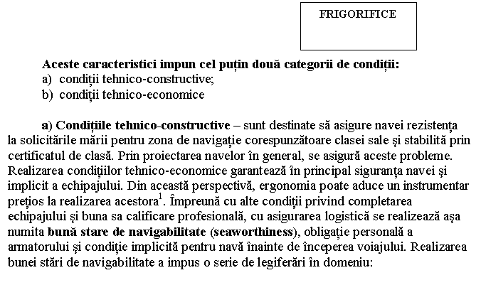b) Conditiile tehnico-economice - se refera la ansamblul calitatilor constructive si caracteristicilor de exploatare din punct de vedere al performantelor, care trebuie sa asigure eficienta economica a fiecarei nave în parte, a firmei de shipping, a întregii flote.