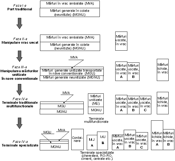 port traditional; manipulare vrac uscata; manipularea marfurilor unitizate cîn nave conventionale; terminale traditionale multifunctionale; terminale specializate.