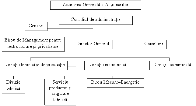 Structura organizatorica de conducere a societatii I.O.R. S.A. în raport de numarul compartimentelor functionale si în functie de tipul de legaturi structurale are o structura de tip ierarhic functionala (mixta). Structura de tip ierarhic-functionala se caracterizeaza prin faptul ca în componenta sa sunt constituite compartimente functionale (directia economica, directia comerciala, directia tehnica de productie), sefii acestora neavand însa autoritatea ierarhica asupra executantilor din alte compartimente.