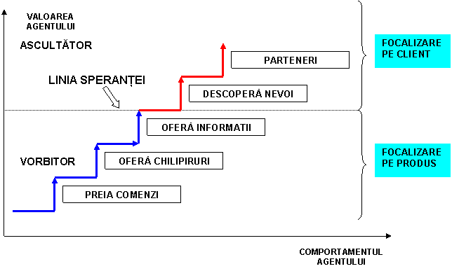 Valoarea dvs. īn fata clientului dvs. depinde de modul īn care va comportati si īn ce masura va ridicati la nivel asteptarilor acestuia. Extremele sīnt reprezentate de agentul care se multumeste sa preia o comanda din partea clientului si de agentul care īsi trateaza clientul ca pe un partener de afaceri. Aces 21521t1917v t statut se cīstiga īn timp si presupune: