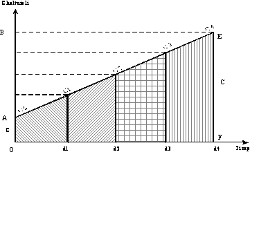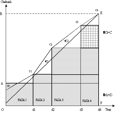 In acest fel, cazul evolutiei neuniforme a cheltuielilor se reduce la modelul anterior a cheltuielilor uniforme pe faze ale ciclului de fabricatie, ceea ce grafic se poate reprezenta astfel, figura 5.6.