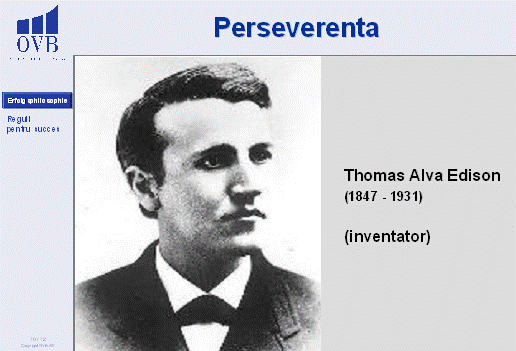 De exemplu, Thomas Edison a trait sute de insuccese inainte de a inventa becul electric, totusi marele inventator a stiut ca fiecare insucces il aduce mai aproape de scopul sau.