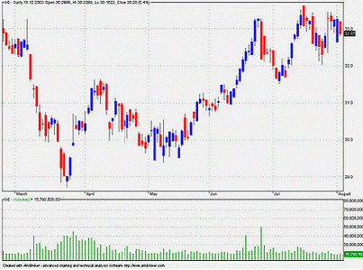Din tabelul societatii CMP se poate observa ca autocorelatia negativa de lag unu se pastreaza si pe subperioade, în intensitati diferite. Prin testarea semnificatiei acestor coeficienti s-a gasit ca pentru primele doua subperioade acestia nu difera semnificativ de zero. Conform acestor coeficienti, dupa un randament pozitiv urmeaza un randament negativ si invers. Rezultatul trebuie privit cu precautie datorita valorilor mici ale coeficientilor de autocorelatie.